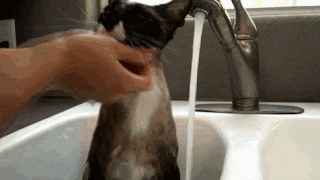 Aún así, es falso que NUNCA debemos bañarlos, es necesario hacerlo así sea pocas veces, sobre todo si el gato está expuesto a jardines o a exteriores, o como en mi caso, cuando se pone juguetón con mi perrito y termina hecho un desastre K.