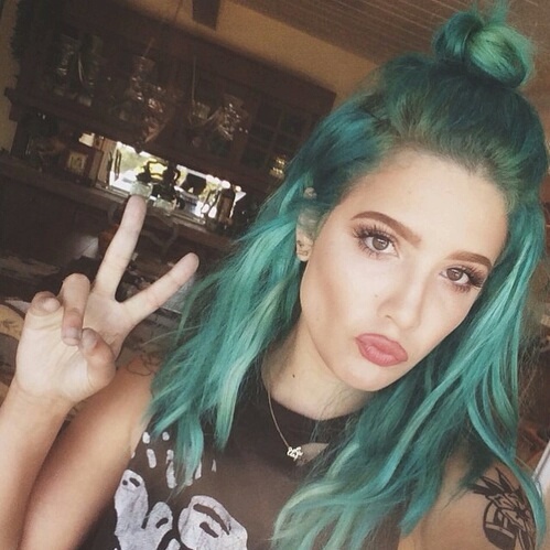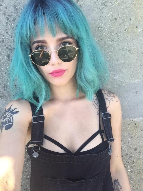 Para finalizar en cuanto a su atuendo, recuerden que Halsey ha variado muchísimo sus peinados, y actualmente tiene el cabello bastante corto. Cuando lo tenía largo, solía usarlo suelto y usar colores atrevidos como verde, azúl y rosado.