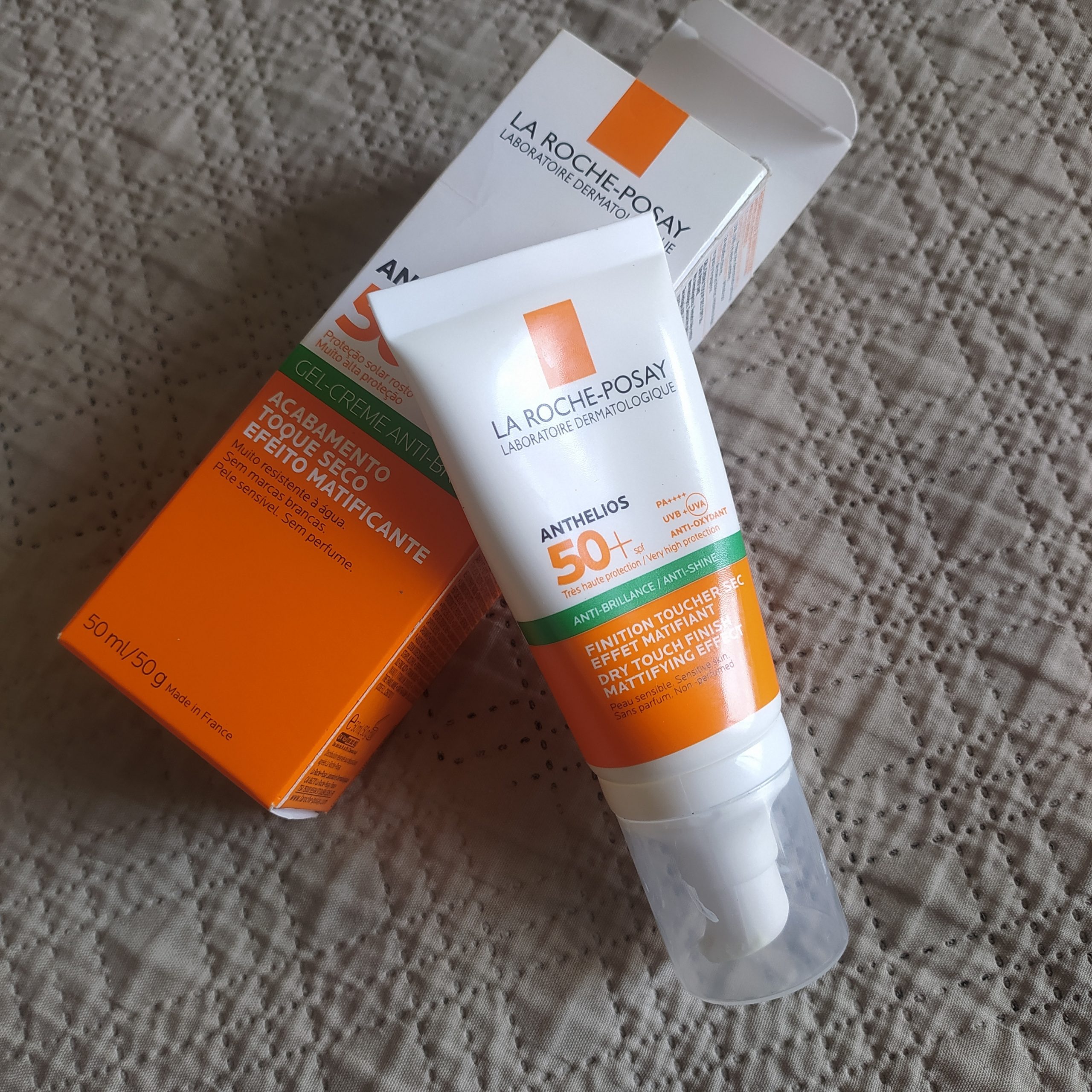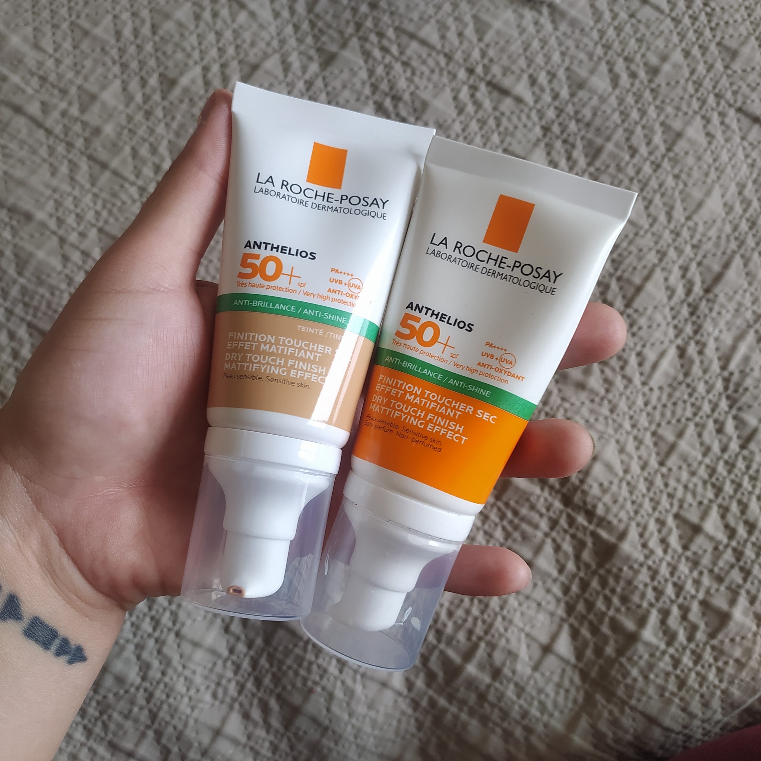 Recientemente aproveché una promo 2×1 en Mifarma que incluía dos versiones (una con color y otra sin color) del Anthelios XL Gel-Crema 50FPS de La Roche Posay.